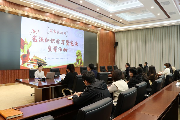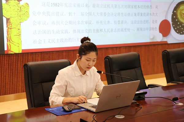 活動分兩個環(huán)節(jié)。在第一個環(huán)節(jié)中,由法律事務專員為公司全體干部職工講解了憲法修改的意義、新憲法修改的重點內(nèi)容等,其中針對我國設立國家憲法日的目的和意義做了重點講解。
